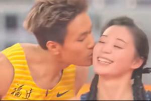 体育资讯11月17日讯 全运会4×100米混合接力决赛,福建队夺冠。赛后福建队队员何锦櫶(xiǎn)在央视镜头下大方地亲吻了亚军成员、四川“田径甜妹”刘峡君,两人恋情曝光。