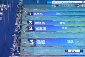 体育资讯11月17日讯 全运会游泳女子50米自由泳决赛,吴卿风以24秒21的成绩夺得冠军,程玉洁收获亚军,何诗蓓和吕越并列季军。