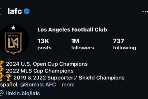 体育资讯8月6日讯 据记者Favian Renkel报道,洛杉矶FC俱乐部ins粉丝数量突破100万。