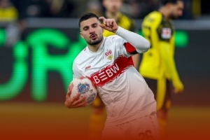 这名前锋此役上演帽子戏法,包办斯图加特全部进球,下半场补时阶段的进球帮助球队绝平多特,从客场带走1分。