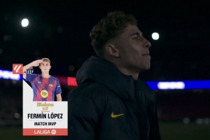体育资讯11月23日讯 巴萨在本轮西甲4-0完胜毕巴,费尔明在赛后被西甲官方评为全场最佳。