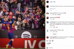 他也在赛后通过社媒晒出自己的庆祝照,并配文:“你好,诺坎普!回家的感觉真棒!”