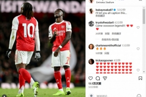 在社交媒体上,萨卡晒出了自己和上演帽子戏法的埃泽赛场同框照,他写道:大家发挥创意,取个标题吧!
