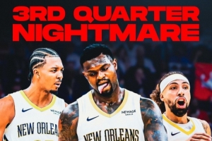 体育资讯11月24日讯 新奥尔良鹈鹕赛季至今,第三节单节只赢过两次。