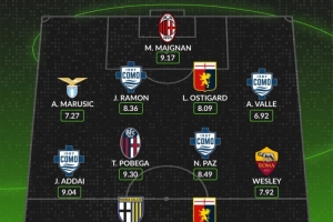 体育资讯11月25日讯 意甲第12轮联赛已经完赛,whoscored也统计了本轮评分最佳阵,米兰德比闪耀的迈尼昂领衔。