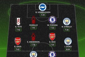 后卫:肯尼·泰特(富勒姆,7.42分)、穆里略(诺丁汉森林,7.91分)、韦斯利·福法纳(切尔西,7.53分)、奥赖利(曼城,7.36分)