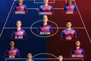 前锋:拉菲尼亚、莱万、亚马尔