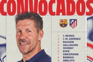 马竞对阵巴萨大名单: