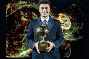姆巴佩社媒晒出杜埃领奖的照片,配文:“祝贺你,天才!实至名归!尽情享受这一刻,尽快康复,早日归来!”