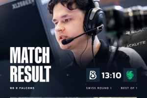 再到长枪,龙哥残局1v2无力回天,Niko第19回合英雄AK只换掉esenthial,monesy捡起AK被npl打掉,B8拿到第11分。关键第20回合,匪口Niko三杀为猎鹰拿到第9分。后续B8枪械劣势翻盘,npl三杀收割残局为B8拿到赛点,猎鹰束手就擒,以10-13不敌B8。