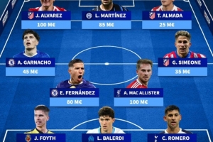 中场:恩佐、麦卡利斯特、加纳乔、朱利亚诺·西蒙尼