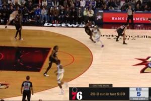 首节结束时,76人以30-10领先勇士