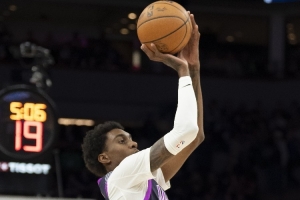 谈及麦克丹尼尔斯中距离投篮的出色表现,芬奇表示:“他具备绝佳的身高条件,手感非常柔和,投篮弧线很高。他拥有一名优秀中距离射手的所有特质 —— 能稳定找到自己的投篮点,动作从容可控,弹跳能力出色,起跳后很难有人能干扰到他的投篮。”