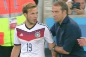 在格策出场之前,正是弗里克在场边拿着战术板对他进行了讲解,说明了球队对他的战术要求。而格策在替补出场后也不负众望,在加时赛第113分钟,格策胸部停球后左脚射门得分,帮助德国1-0战胜梅西领衔的阿根廷,成功夺得冠军。