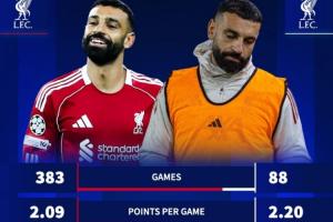 体育资讯12月08日讯 在萨拉赫炮轰利物浦将自己当作替罪羊后,德转统计了萨拉赫2017年加盟后,利物浦在他出场以及缺阵的下的战绩对比,在萨拉赫缺阵时,利物浦的场均积分、进球数更高,但丢球数也更多。