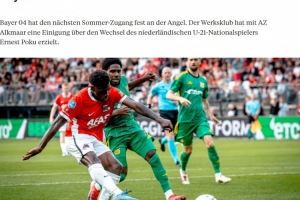 波库目前效力于阿尔克马尔,两家俱乐部已经就转会事宜达成一致,球员只需通过体检就可加盟。这名21岁的边锋将和勒沃库森签约至2030年,转会费约为1000万欧。