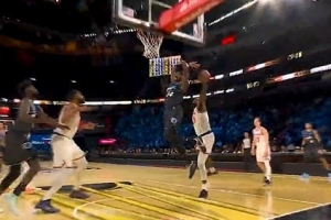 遮天蔽日!拖布篮下补防直接扇飞詹金斯压哨上篮 活塞24秒违例