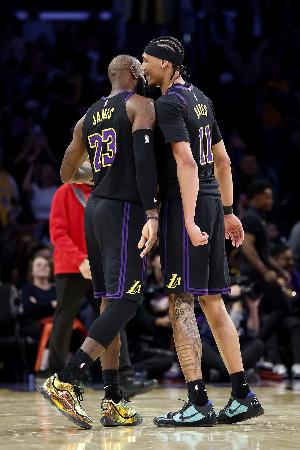 这谁能忍得住....巴图姆&小琼斯边线发球连着送!卢瞪眼睛&卡看呆