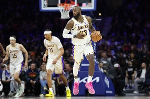 “勒布朗罚丢了,他本赛季罚球一直挣扎,他职业生涯罚球命中率通常在70%出头到中段,本赛季只有61%,是其生涯新低。”