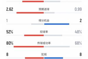 体育资讯12月16日讯 曼联对阵伯恩茅斯的英超联赛正在进行中,曼联半场2-1领先,以下是两队数据对比。