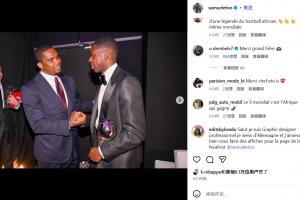 体育资讯12月18日讯 登贝莱在昨日赢得了FIFA年度最佳球员,埃托奥也通过社媒晒出合照并发文送上祝贺。