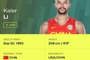 中国男篮首位归化球员!NBA官网显示:李凯尔的国籍为美国籍