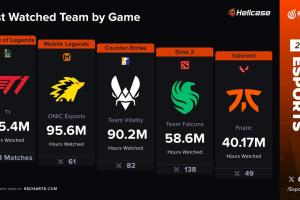 体育资讯12月28日讯 Esports Charts统计2025年各游戏项目观看量最高的电竞战队: