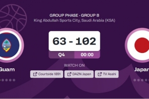 体育资讯8月10日讯 男篮亚洲杯今天继续进行,日本男篮102比63大胜关岛男篮。