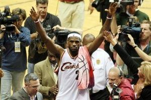 主持人:“勒布朗回到克利夫兰的时候似乎打得很不错。”