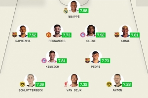 体育资讯1月1日讯 2025年已经结束,sofascore也列出了五大联赛年度评分最佳阵,姆巴佩领衔,巴萨4将在列。凯恩和哈兰德落选。