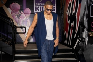 赛前,国王官方晒出了球员的入场照,威少穿着类似于汗衫的服装入场。