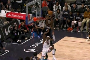一马当先!谢泼德抢断希罗 反击面对空篮飞身暴扣