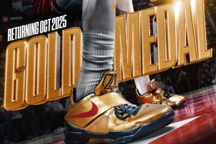 体育资讯08月11日讯 据报道,KD4“金牌”配色将于今年秋季回归。