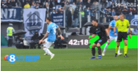 第45分钟,扎卡尼踢倒麦克托米奈染黄,后者在空中翻滚倒地。