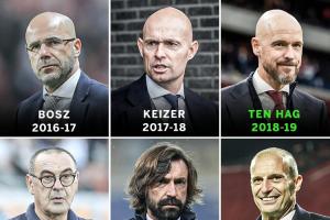 据统计,自2016年进入阿贾克斯一线队以来,德里赫特已经先后在9位主教练(滕哈赫两次)手下踢球,每个赛季都会碰上更换教练的情况。