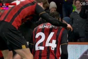 体育资讯01月08日讯 热刺vs伯恩茅斯第95分钟,塞梅尼奥破门,伯恩茅斯此时3-2了!
