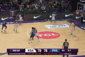 比赛最后8秒,菲律宾落后3分,布朗利持球顶开沙特球员阿尔穆瓦拉德的防守,强行干拔三分命中扳平比分。