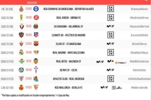 体育资讯1月10日讯 西甲官方公布了第22轮比赛的开球时间,2月1日4点埃尔切vs巴萨,2月1日21点皇马vs巴列卡诺。