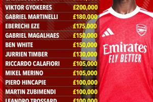 体育资讯01月11日讯 多方报道称阿森纳与萨卡敲定新合约,他将在阿森纳拿到30万镑的队内顶薪,《太阳报》罗列了阿森纳队内的最新周薪排名。