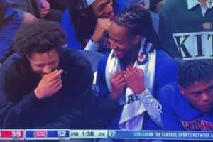 体育资讯1月12日讯 昨日活塞主场92-98不敌快船,比赛中出现有趣一幕。