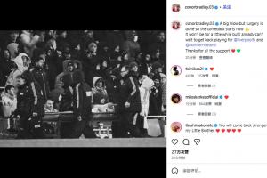 布拉德利写道:沉重的打击,但手术已经完成,现在开始康复了💪