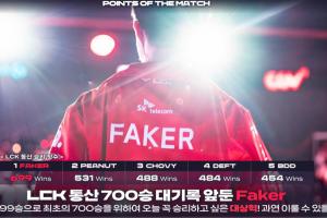 LOL历史首位拿到单一联赛700胜场为Faker,而LCK历史第二胜场的Peanut目前只有531胜。
