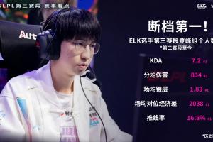 体育资讯8月13日讯 今日LPL第三赛段将迎来AL对阵BLG的比赛,赛前官方直播间给出数据:Elk选手第三赛段登峰组个人数据断档第一!