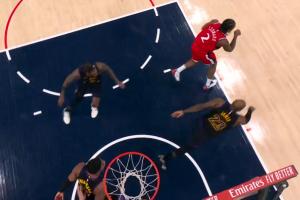 好机会!杨瀚森外线各种策应没机会 索性撤出投三分可惜投短了