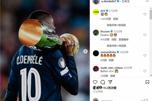 登贝莱当选本场比赛最佳球员,赛后他在社交媒体上晒出肩扛奖杯的照片,庆祝球队夺冠。