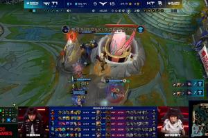 T1在比赛中期陷入超大劣势,一度人头比1:15,最劣势的时候被拉开1w4经济差+水龙魂;但T1凭借更强的运营拉扯,Oner抢下第一条远古龙续命,并顶着第二条远古龙Buff打出奇迹团,耗时46分钟极限翻盘KT!