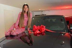 拉菲尼亚的妻子在社媒写道:现在我终于明白他为什么什么都不说了😂他叫我去车库拿东西,等我到那里时,发现是一辆车。
