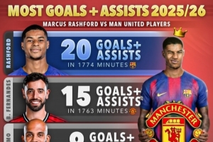 体育资讯1月24日讯 据Score90统计,拉什福德本赛季参与20粒进球,参与进球数量多于任何曼联球员。