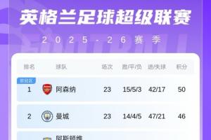 体育资讯01月26日讯 英超第23轮焦点战,曼联客场3-2逆转绝杀阿森纳,取得两连胜,升至英超第四,而阿森纳的领先优势缩水至4分。