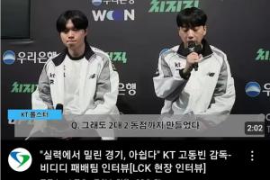 体育资讯01月30日讯 在今天的LCK CUP超级周,KT 2:3不敌NS;赛后接受韩媒群访的BDD表情很是不爽👇